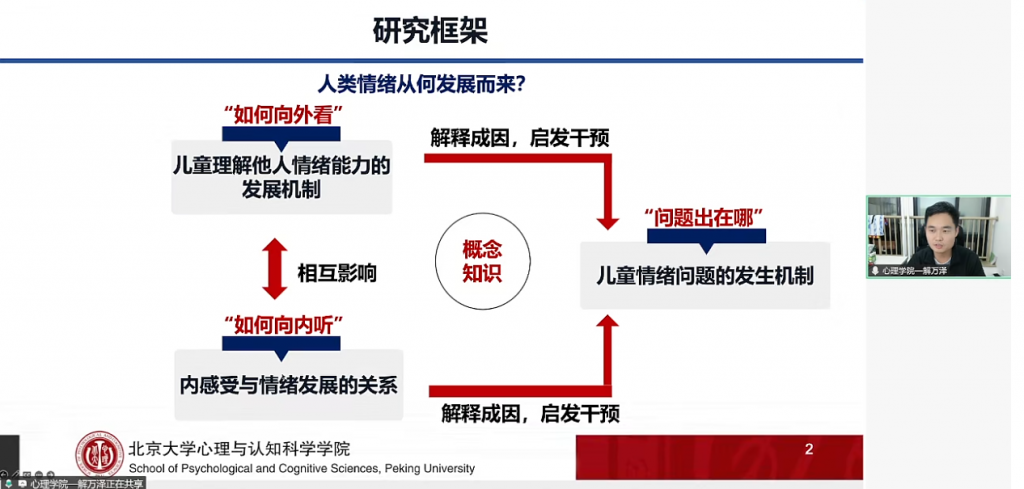 2月10日晚,在脑客中国科研直播第215期中,北京大学心理与认知科学学院及IDG麦戈文脑科学研究所研究员解万泽博士,为大家带来了一场题为“情绪理解与体验的开展建构及认知神经机制”的深度学术分享。其研究团队以行为与认知实验范式结合生理与神经科学技术,探究婴幼儿及儿童时期情绪与注意的正常与异常开展。本次直播系统阐述了他所在团队围绕儿童情绪能力开展的系列前沿研究,揭示了从理解他人到体验自身的复杂机制。