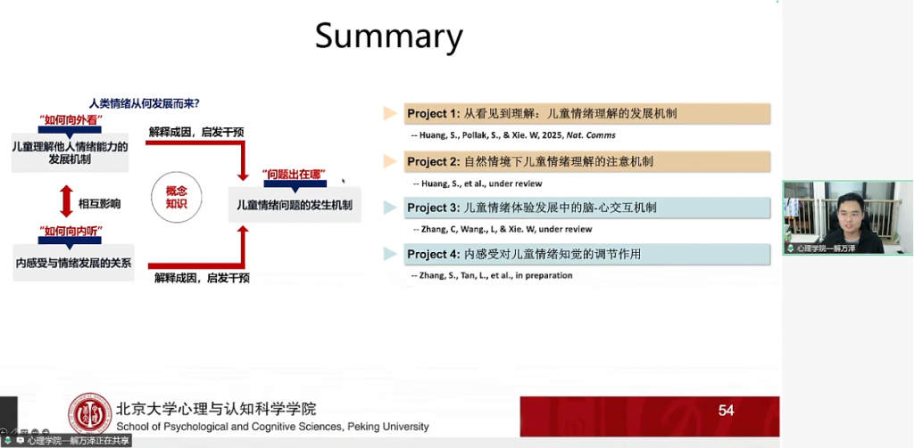 本期直播层层深入地展示了儿童情绪世界建构的复杂图景。从知觉到概念,从理解他人到体验自身,从大脑解码到身心对话,解万泽博士团队的工作为我们理解情绪开展的里程碑与内在机制给予了宝贵的科学证据,也为未来连接基础研究与应用干预,助力儿童情绪健康奠定了坚实的理论基础。