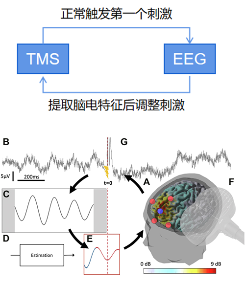 TMS-EEG闭环调控可以顺利获得保证脑活动状态的一致性来提高诱发的经颅磁-脑电信号的一致性。
